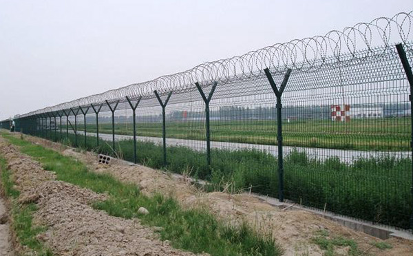 近年來,機場護欄網被廣泛應用在機場,軍事基地等高安全場所。(如果在機場護欄網頂部加裝刀片刺絲、刀片刺繩后又很好的增強了安全防護性能。)